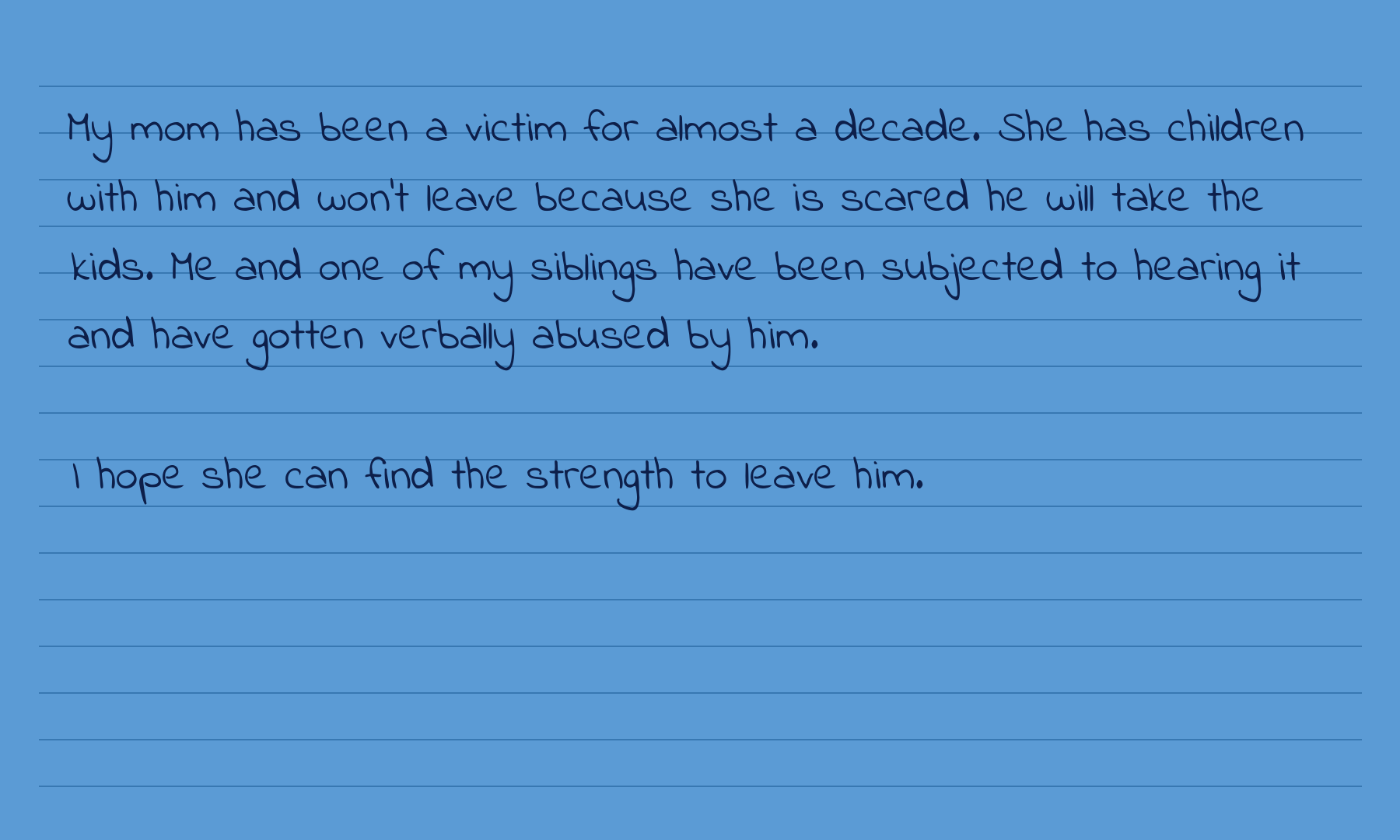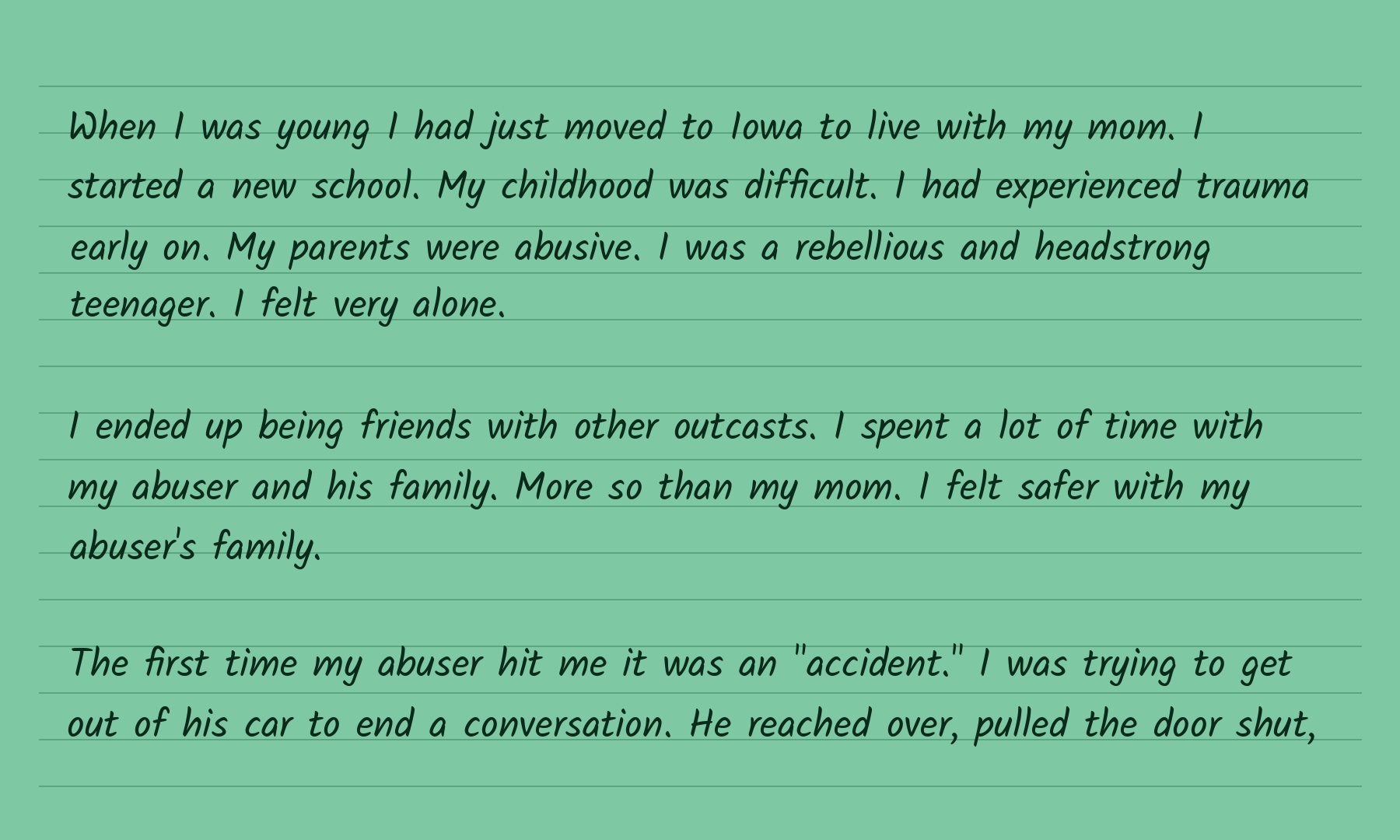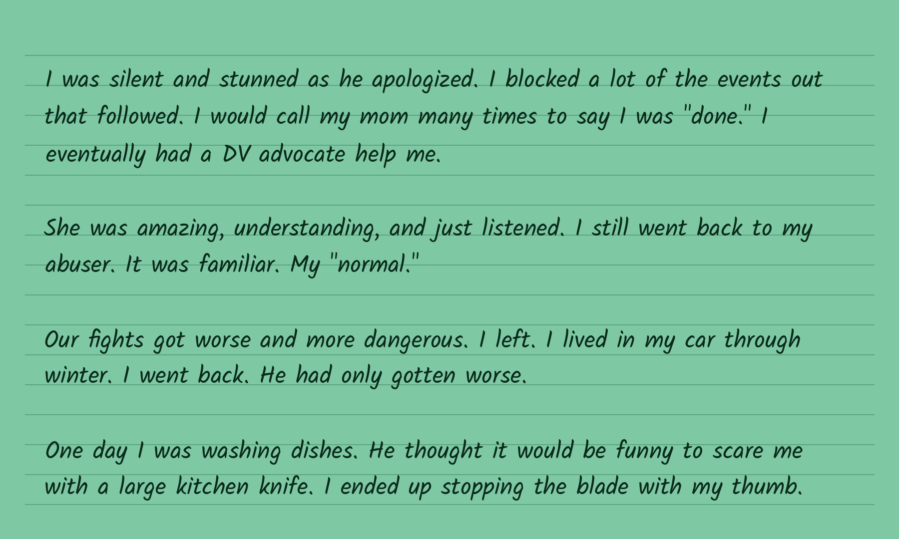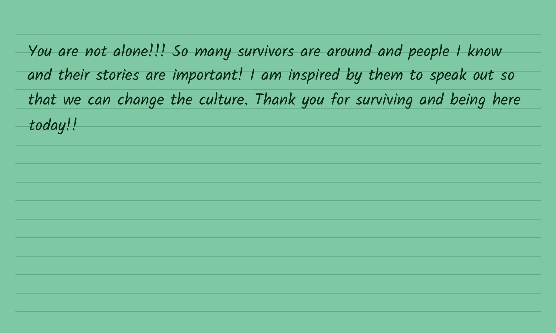 The cards you’ll see below are recreated from the originals to protect the privacy of everyone who wrote. The words are theirs. The courage is theirs.